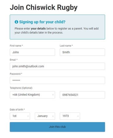 Repeat the step again if you have more than one child joining the club. If not, click Next Step