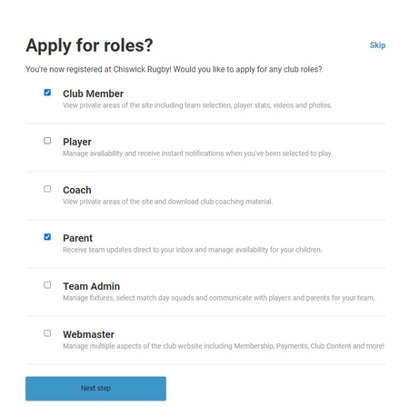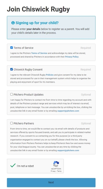 Please confirm email that was sent to your email account to continue your application. Web Admin will review your application and you will receive a notification from Pitchero once you have been accepted.